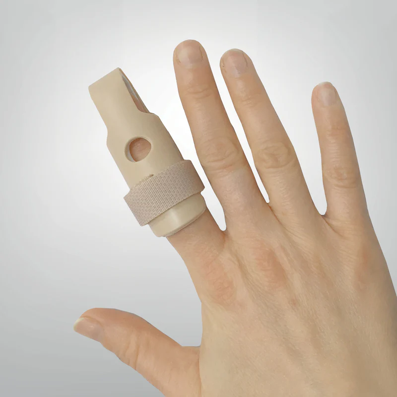 Această orteză a fost concepută pentru imobilizarea degetului afectat. Orteză protectoare și de posturare realizată dintr-o placă PVC (etilen-acetat de vinil) termoformabilă ultra ușoară și flexibilă, învelită cu o spumă de polietilenă EVA, care asigură imobilizare fermă și protecție. Prevăzută cu închizătoare tip velcro, pentru ajustare și stabilizare optimă.