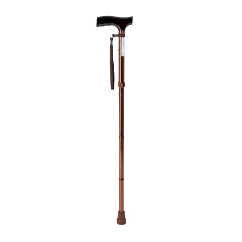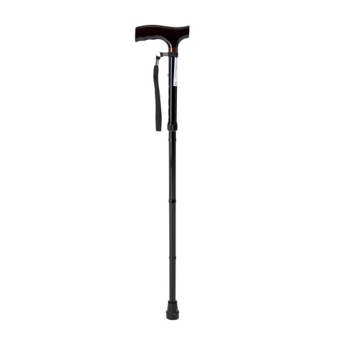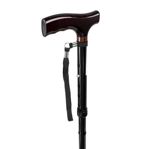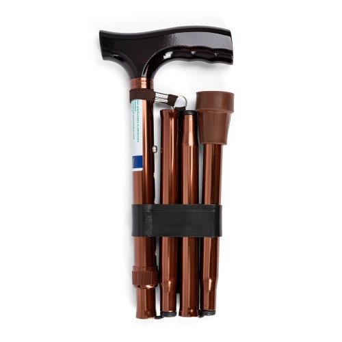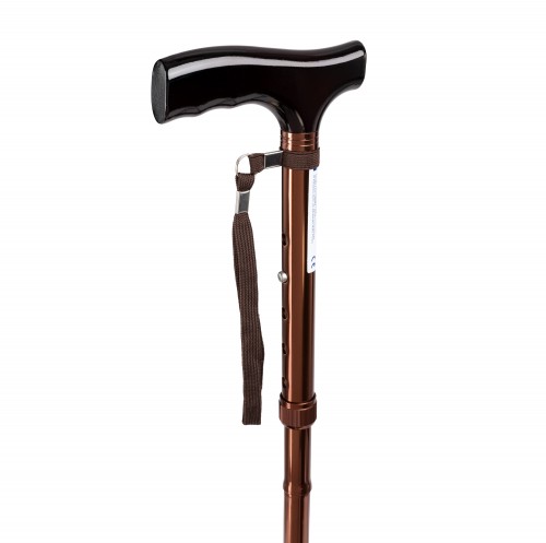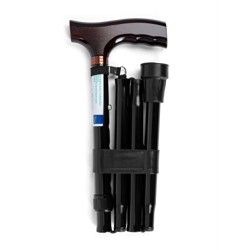 | Caracteristici Bastonul este alcătuit dintr-un picior din aluminiu cu mâner cu aspect de lemn și un vârf de cauciuc moale, antiderapant. Datorită reglării în înălțime prin buton și posibilității de a plia bastonul în trei părți, acesta este foarte confortabil pentru utilizarea zilnică. A. mâner B. curea de încheietură C. reglare în înălțime – pini de blocare D. vârf de cauciuc Utilizare |