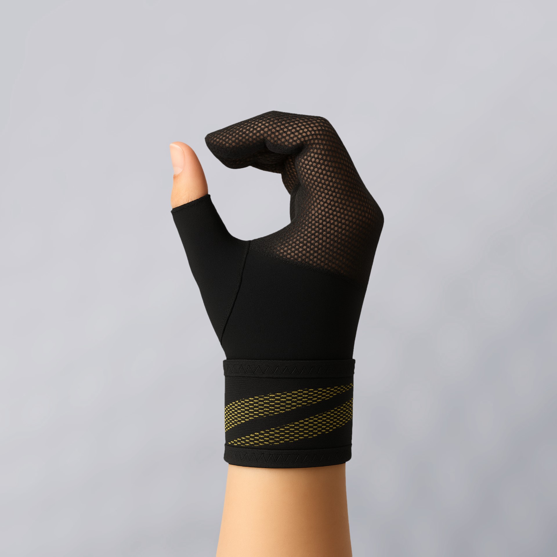 Concepută special pentru ameliorarea simptomelor nocturne asociate sindromului de tunel carpian (STC), reduce durerea și amorțeala degetelor în timpul somnului. Menține degetele într-o poziție relaxată, ușor flectată, contribuind la scăderea presiunii exercitate asupra nervului median și la îmbunătățirea fluxului sanguin neural. Fabricată din material respirabil, mânușa asigură o ventilație adecvată și un nivel ridicat de confort, fiind potrivită pentru utilizare prelungită pe durata nopții (80% nailon, 20% spandex, benzi galbene 100% silicon).